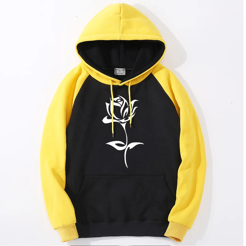 Толстовка Женская флисовая с простым принтом цветущих роз, утепленный реглан, худи в стиле Харадзюку, свободное худи, свободная одежда