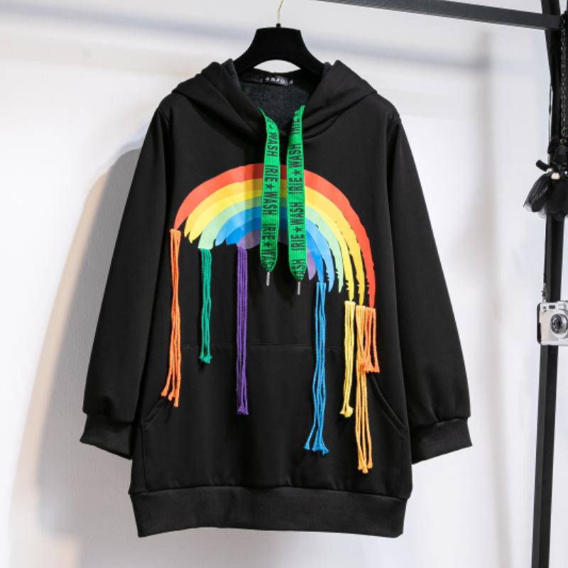Толстовка женская большого размера с капюшоном свободного кроя на осень и зиму 4XL чёрный