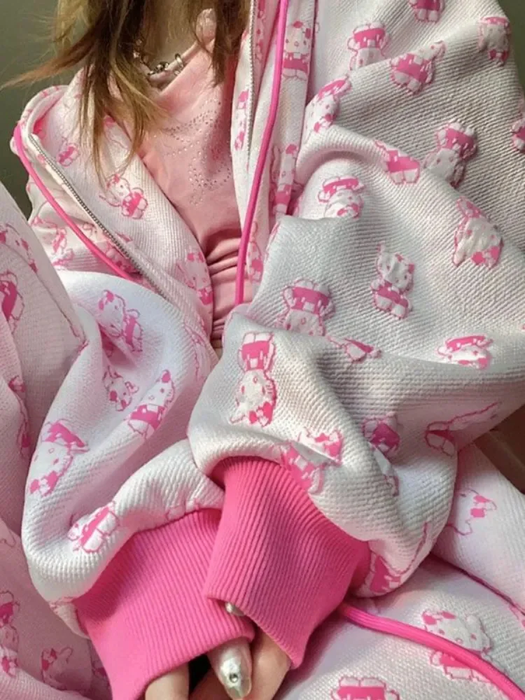 Толстовка женская оверсайз с принтом, на молнии, в японском стиле Харадзюку