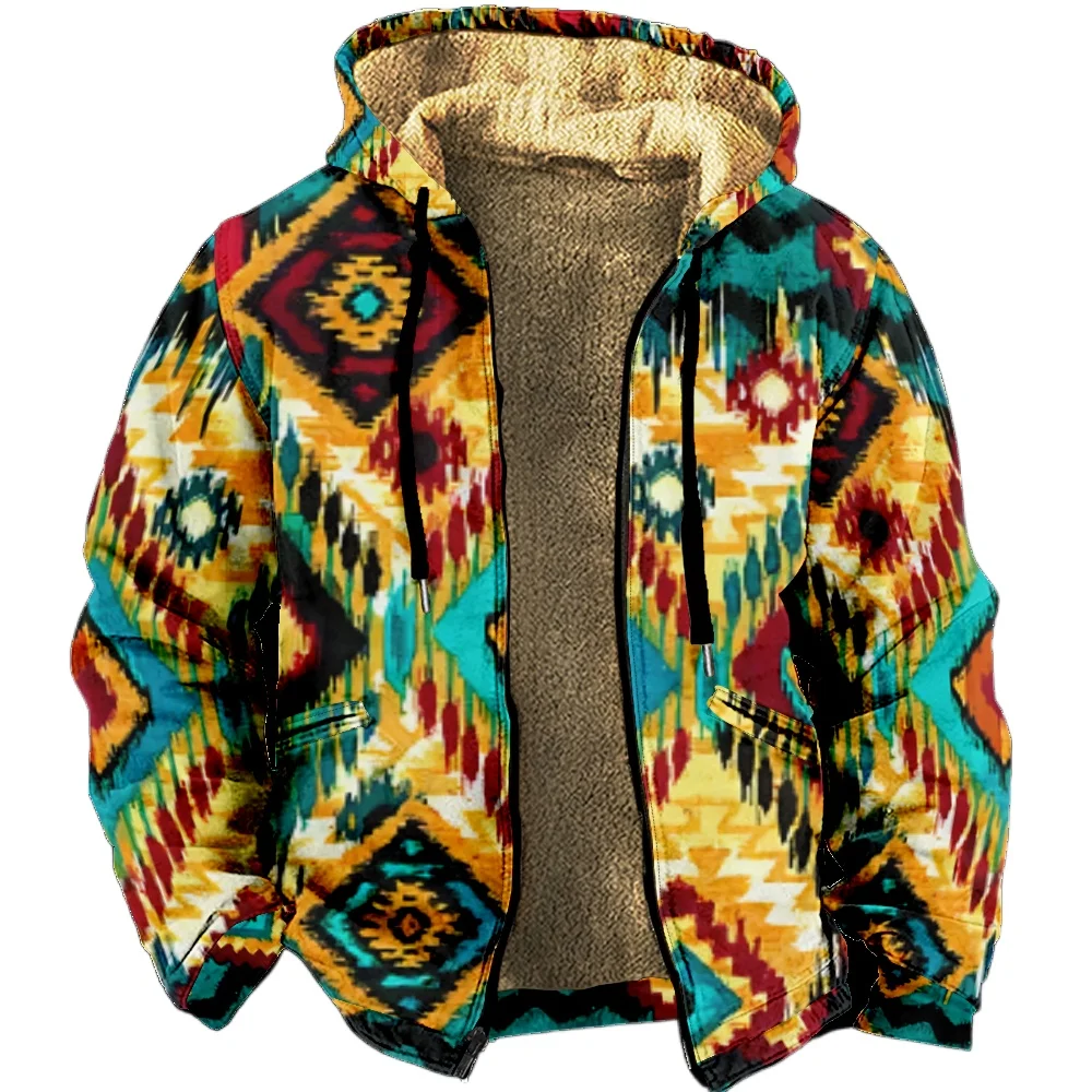 Толстовка мужская на молнии, повседневная винтажная зимняя кофта в стиле пэчворк, в этническом стиле, свитшот с длинным рукавом, куртка с капюшоном