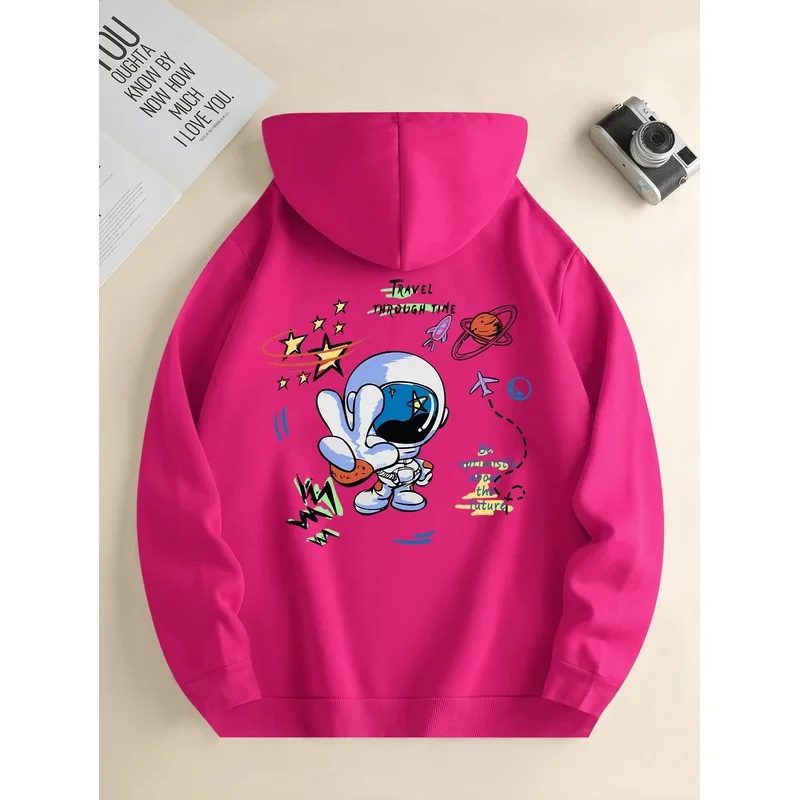 Толстовка мужская с капюшоном, Повседневная Толстовка с кулиской и капюшоном, с принтом астронавта, с карманом кенгуру спереди, мужская куртка