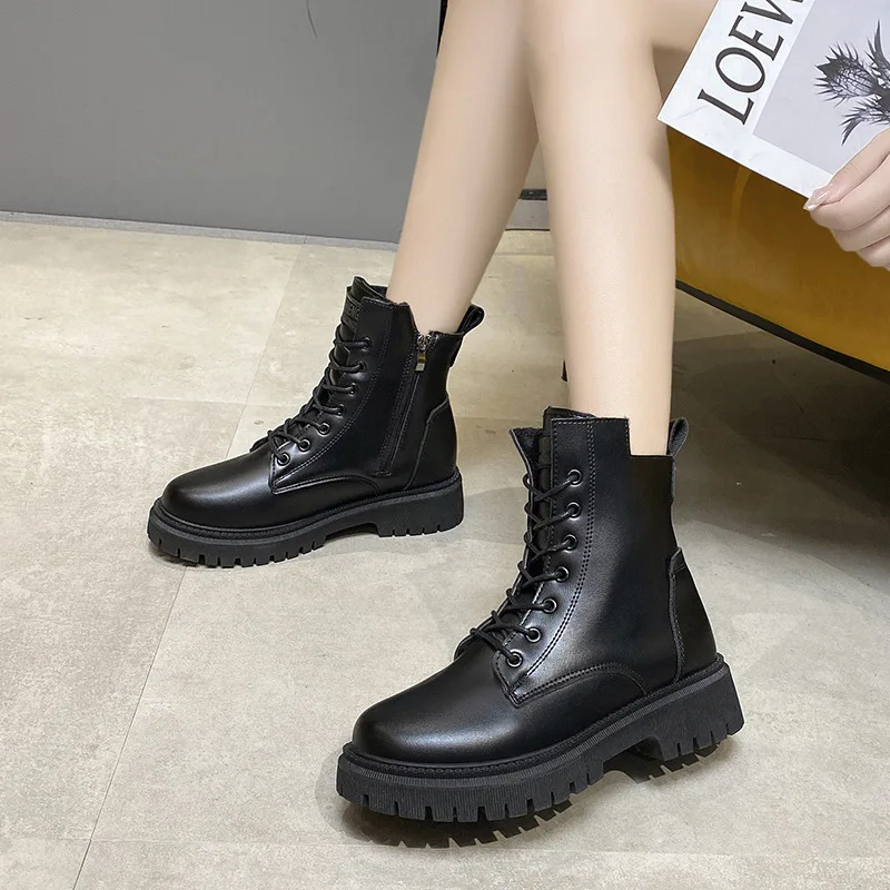 Женские ботинки, осенне-зимние высокие боевые ботинки, женская обувь на платформе со шнуровкой, зимние байкерские ботильоны, женские военны...