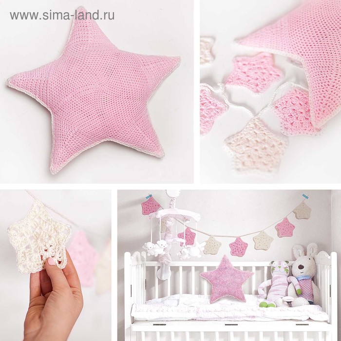 Декор в детскую комнату: подушка и гирлянда «Жизнь в розовом цвете», набор для вязания