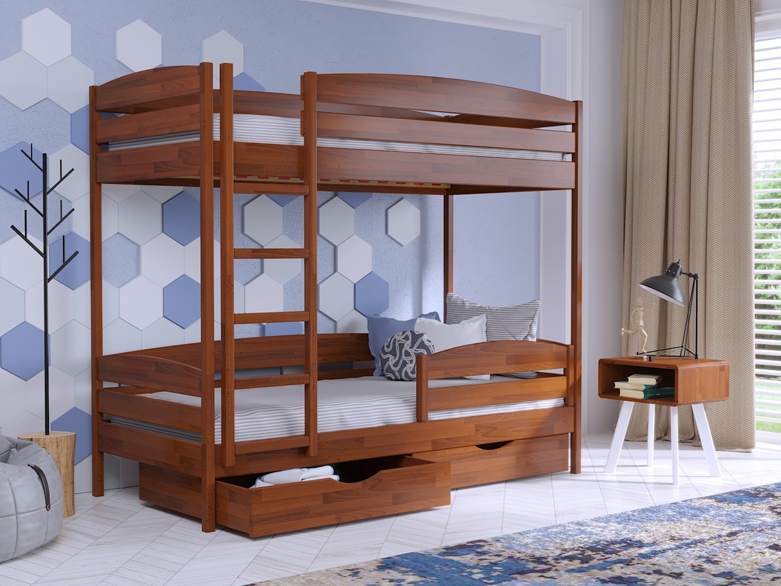 Двухъярусная кровать с ящиками и бортиком защитным внизу 90х190 Estella Дуэт Плюс Ольха (Массив-105) Л4