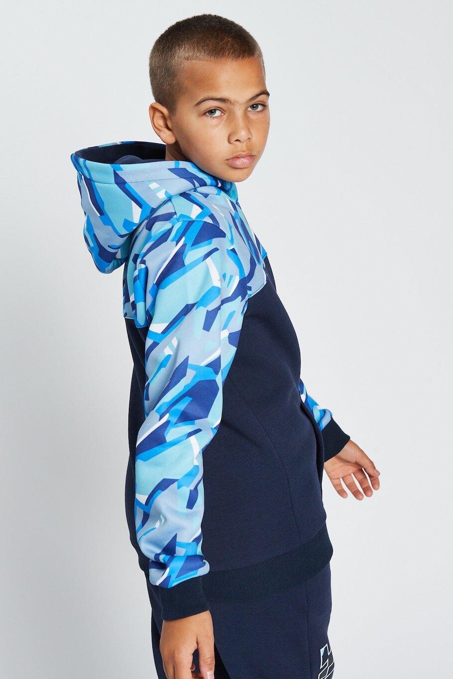 Наша худи Projection украшена ярким геопринтом на рукавах и верхней части груди, а также на капюшоне, ребристыми манжетами и подолом, а также передним карманом-кенджеру. Объединитесь с нашими хромированными джоггерами, чтобы создать полный образ Beat Boyz.
