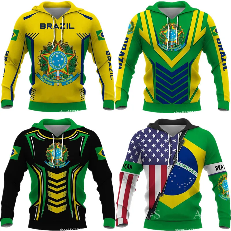 Толстовка с капюшоном для мужчин и женщин, повседневный свитшот с 3d-цифровым принтом, с изображением бразильского флага, Дня независимости, футбола, в национальном стиле