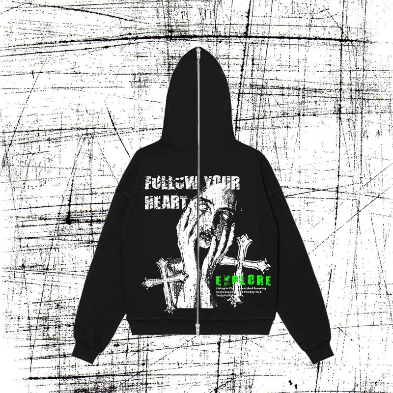 Толстовка с капюшоном из полного материала Y2K — женская, Jaqueta Estilo De Rua, Roupas Góticas Harajuku, Tops De Moda, novo