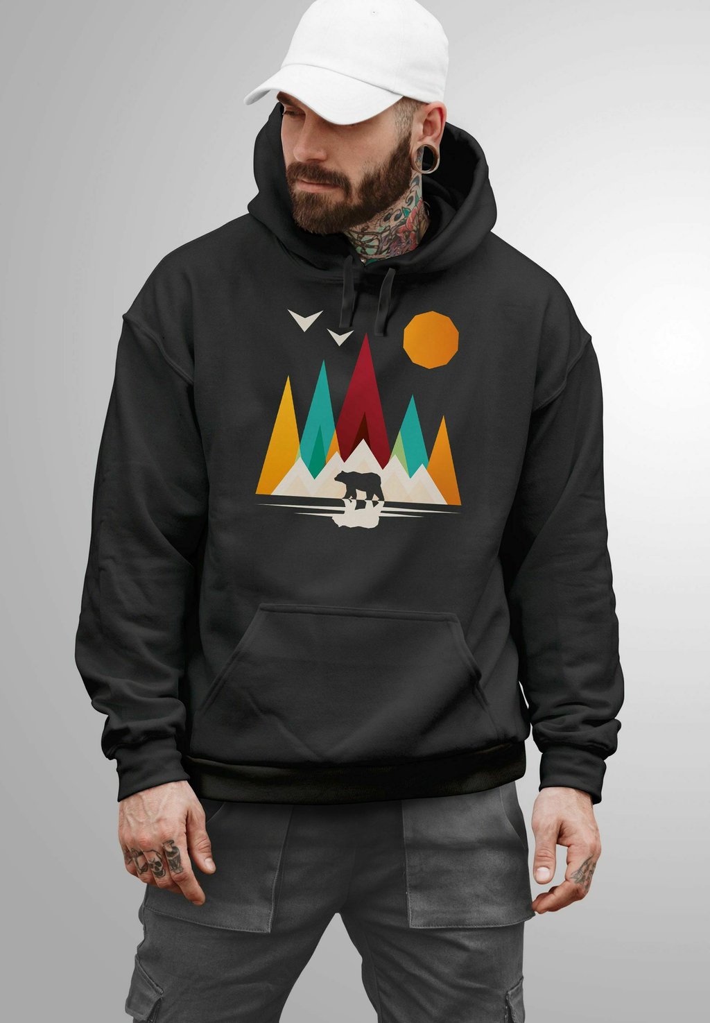 Толстовка с капюшоном MOUNTAINS BEAR NATURE FASHION STREET STYLE Neverless, черный металлик