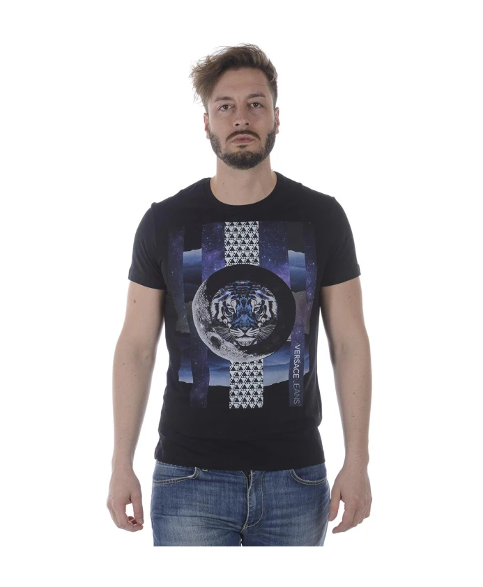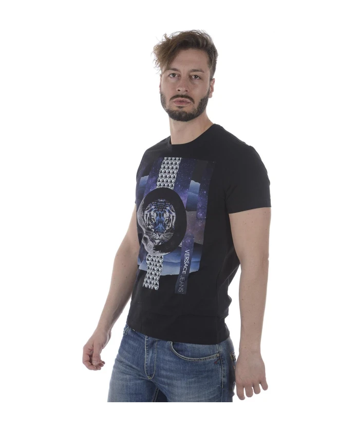 Поднимите свой повседневный стиль с помощью этой мужской футболки Versace Jeans Couture с эффектным дизайном PRINT 5 REGULAR MC. Изготовлен из 100% ткани COTONE для максимального комфорта.