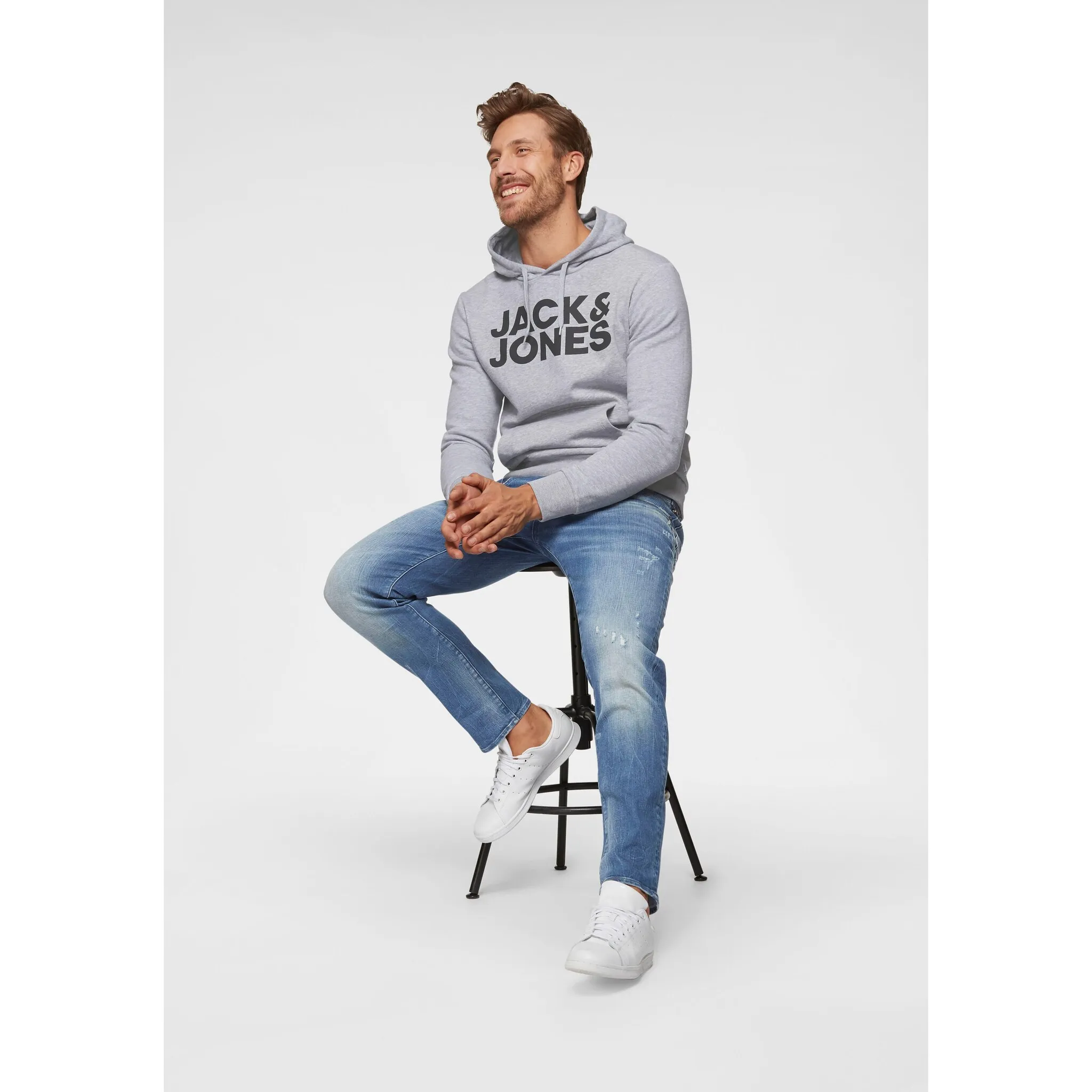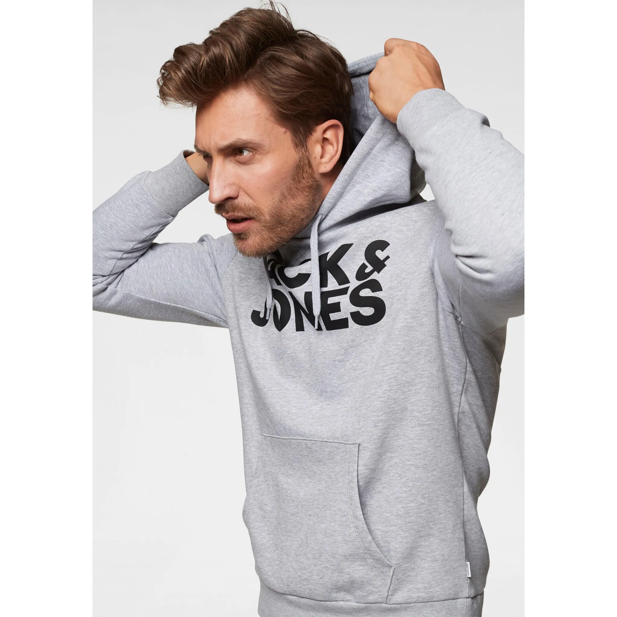 Толстовка Jack & Jones с капюшоном "CORP Logo Hoodie" и принтом логотипа, серый