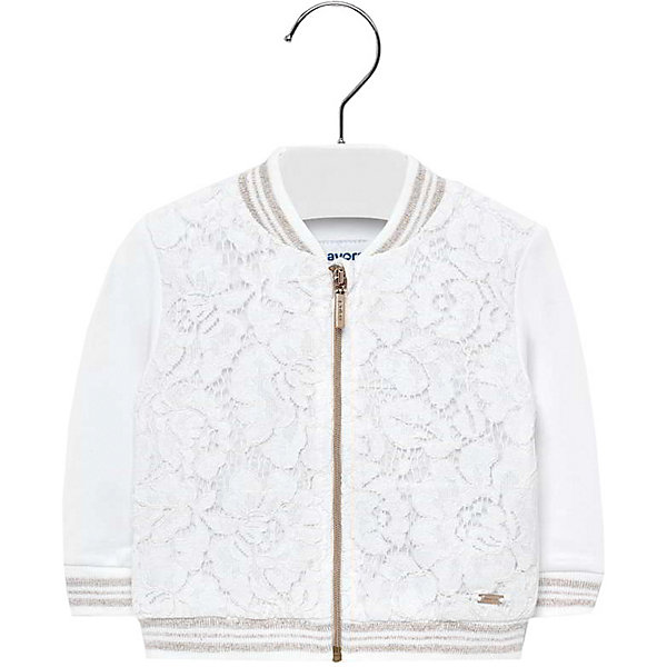 Толстовка с длинными рукавами, не перекручиваются благодаря манжетам. Резинка по низу подгонит посадку и обеспечит комфорт. Приятная на ощупь ткань и удобный крой не будут сковывать. Окантовка горловины не натирает. Декорирована контрастными полосками и кружевным узором.