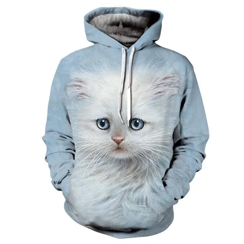 Толстовки с белыми кошками, модная толстовка, повседневный свитшот с животными, толстовки для мужчин и женщин, пуловеры с карманами, Свитшот