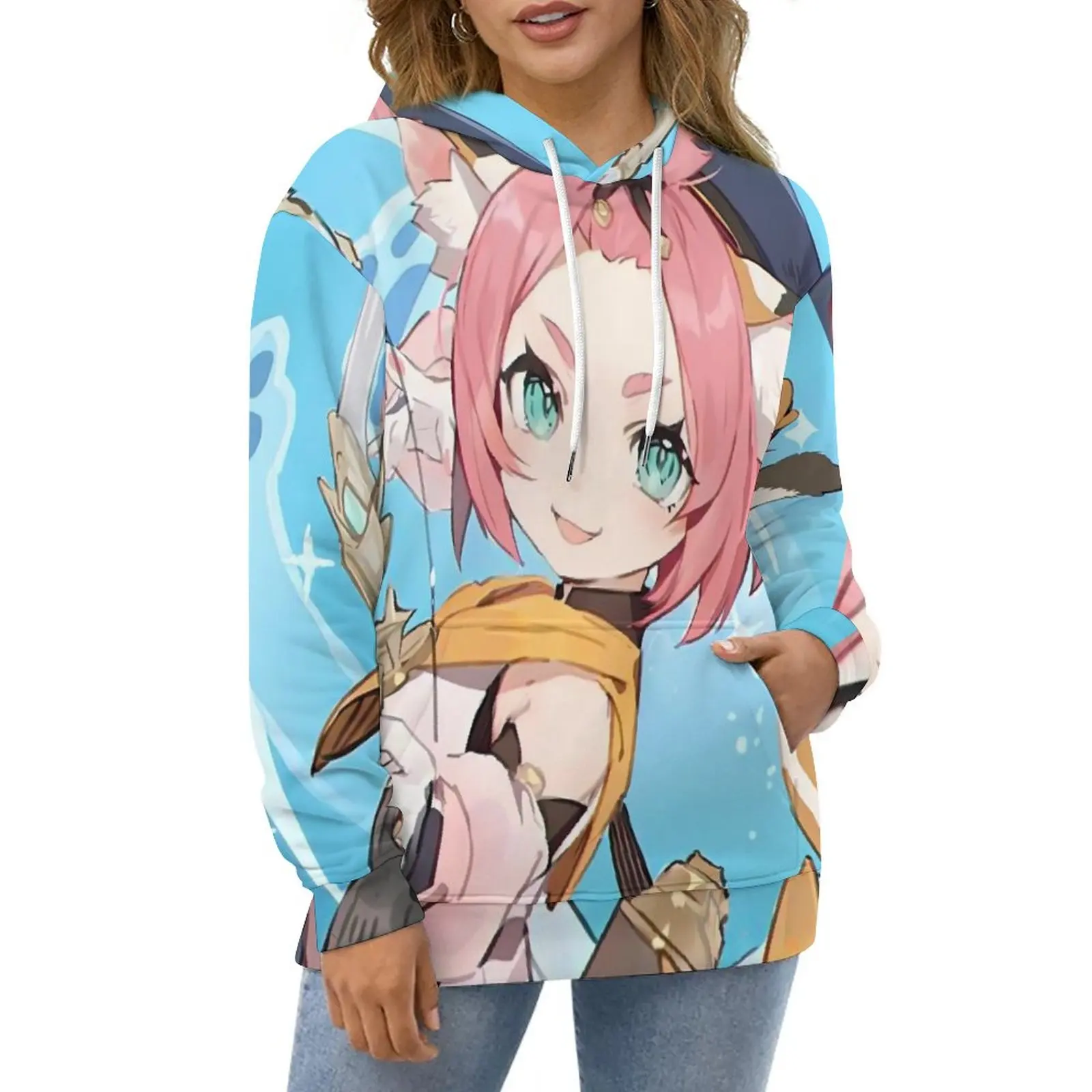 Толстовки Diona Genshin Impact, милые повседневные толстовки с капюшоном и длинным рукавом в уличном стиле с аниме, большие размеры