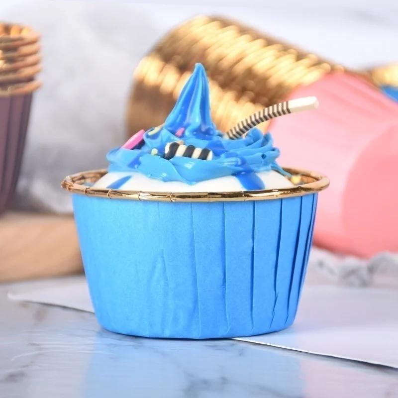 Толстое Золотое и Серебряное Покрытие Ролл Чашка для Кекса Чашка для Выпечки при Высокой Температуре Принадлежности для Выпечки 1PCS-Blue