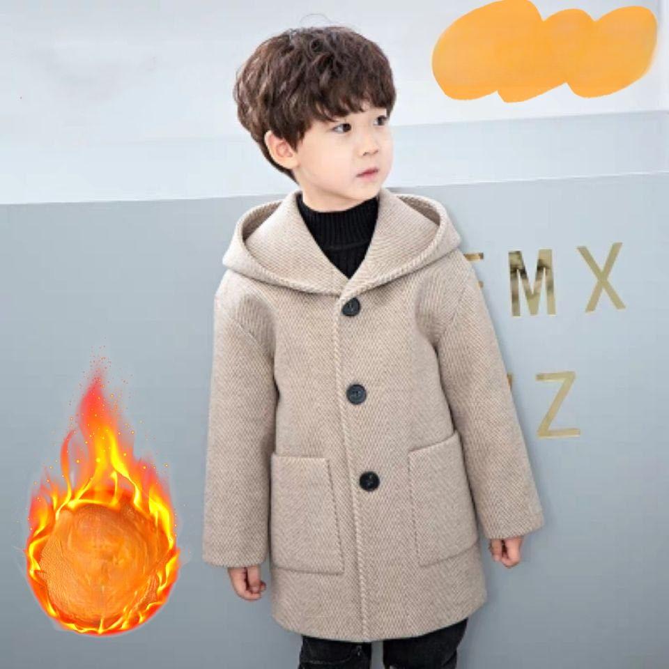 Толстое и модное шерстяное пальто для мальчиков и шерстяное пальто средней длины для детей на зиму 170 хаки