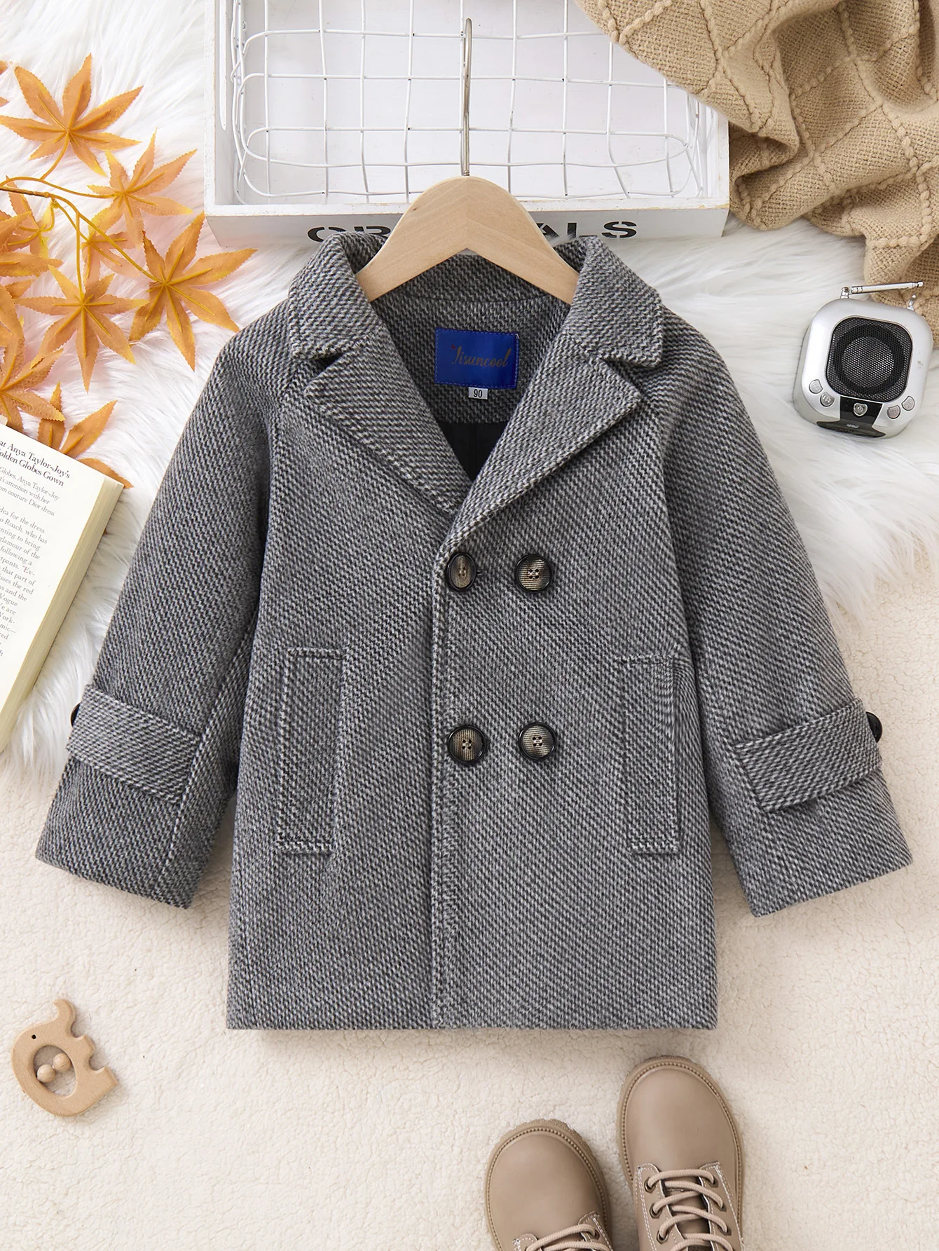 Толстое теплое зимнее шерстяное пальто в стиле ретро для мальчиков и девочек, шерстяное пальто для фотосъемки, школьная детская ветрозащитная уличная куртка, От 3 до 11 лет
