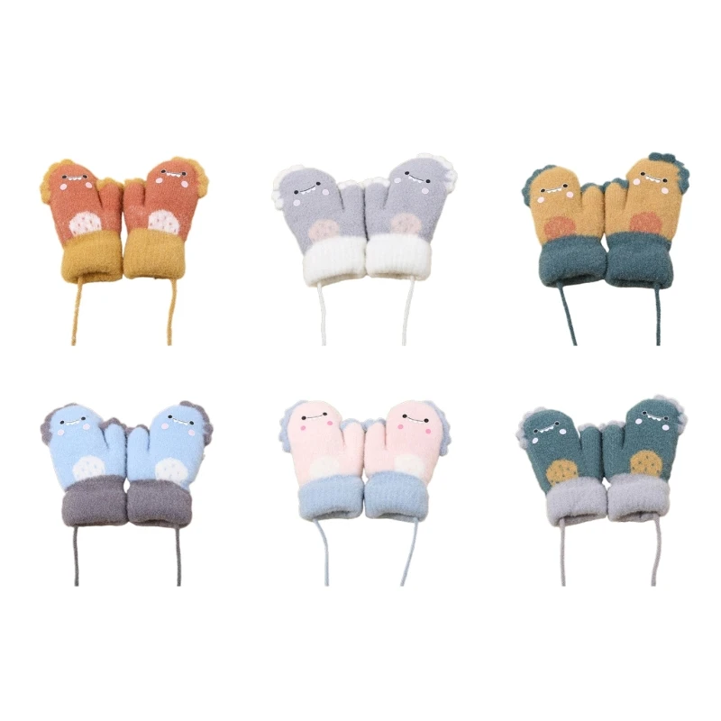 Толстые варежки с героями мультфильмов, детские варежки с веревкой для детей, зимние перчатки с полным пальцем для маленьких и