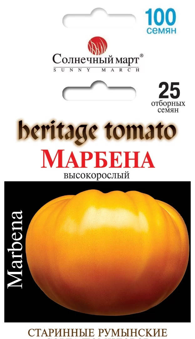 Старинный сорт помидоров, известный как Королева Марбена. Растение высокорослое (до 2 м), среднераннего созревания (105-115 дней). Плоды желто-оранжевые, весом от 100 до 300 граммов, в идеальных условиях до 500 г. Форма первых плодов овальная, затем они становятся круглыми и плоскоокруглыми с пышными плечиками. Вкусные и сладкие помидоры с пониженной кислотностью. Этот сорт очень урожаен, с продолжительным плодоношением и высокой устойчивостью к болезням.