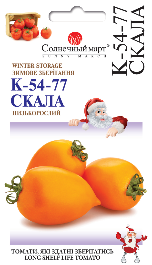 Особенный томат, выведенный украинским селекционером Максимом Викторовичем Гуриным. Оригинальные помидоры треугольной формы вырастают одинаковыми на простых кистях, содержащих 6-8 плодов, которые созревают одновременно. Поскольку этот томат долгохранящийся, то зрелую кисть срезают целой, что способствует лучшей сохранности плодов. При полном созревании эти помидоры приобретают светло-оранжевый цвет очень плотной кожицы, покрывающей плотную мякоть с толстыми стенками с насыщенной красно-оранжевой окраской. Плоды сладкие, с приятной гармоничной кислинкой, сочные, набирают вес до 100 г. Растения детерминантные, высотой 50-60 см, раскидистые, очень позднего срока созревания. Томаты пригодны для всех видов переработки и успешно хранятся до Нового года.