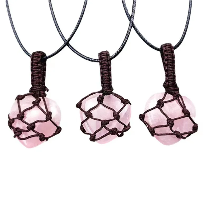 Natural Quartz Crystal Love Heart Chakra Stone Pink Rose Heart Pendant Necklaces Women Jewelry For Necklace Gifts