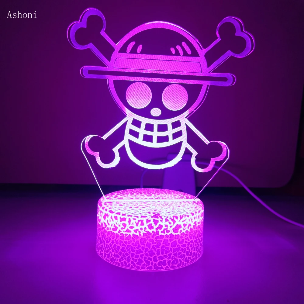 Anime ONE PIECE LOGO Bedroom Night Light Led Touch Sensor Colorful Table for Kids Child Home Decoration Cool Desk 3d Lamp Gift