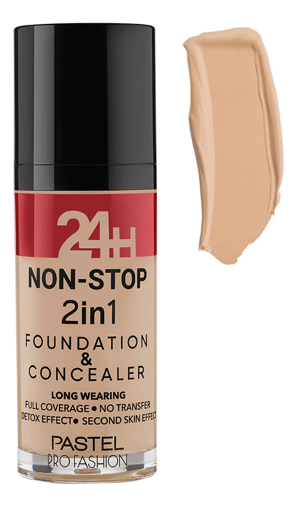 Тональная основа для лица 24H Non-Stop 2in1 Foundation & Concealer 30мл: 606 Warm, Тональная основа для лица 24H Non-Stop 2in1 Foundation & Concealer 30мл