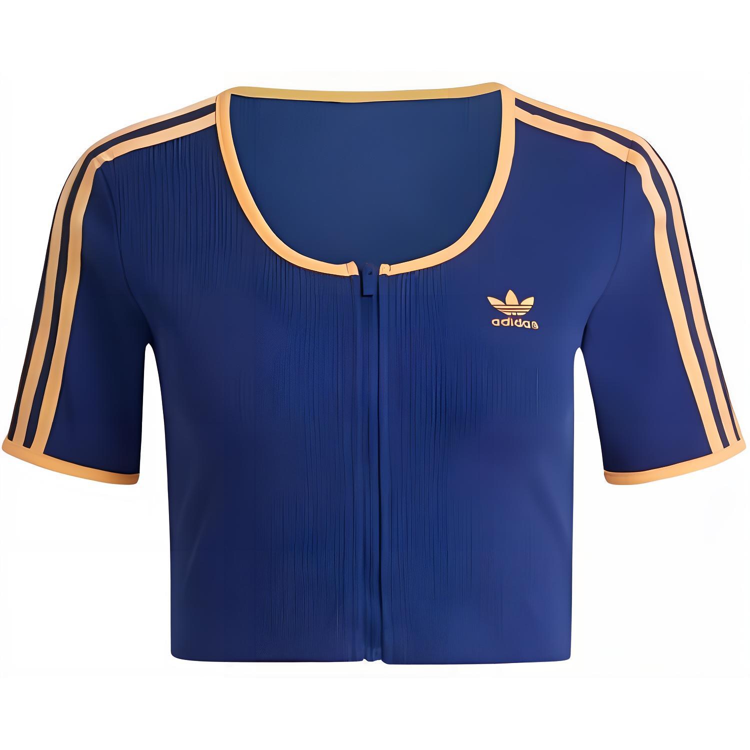 Adidas Originals Полузиповая ребристая футболка с коротким рукавом Синяя, Тёмно-синий