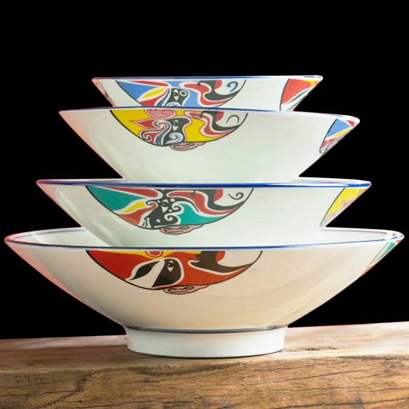 9 Inch National Tide Big Soup Bowl Ceramic Porcelain Rice Bowls Restaurant Ramen Bowls Vintage Tableware Salad Fruit Container
