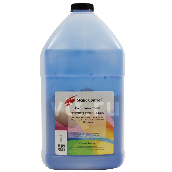 Тонер Static Control TRBUNIVCOL-1KGC, бутыль 1 кг, голубой, совместимый для Brother, универсальный, TRBUNIVCOL-1KGC