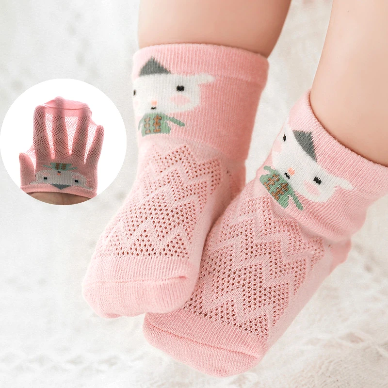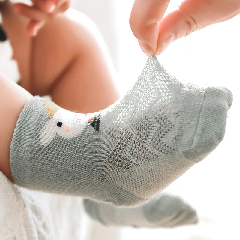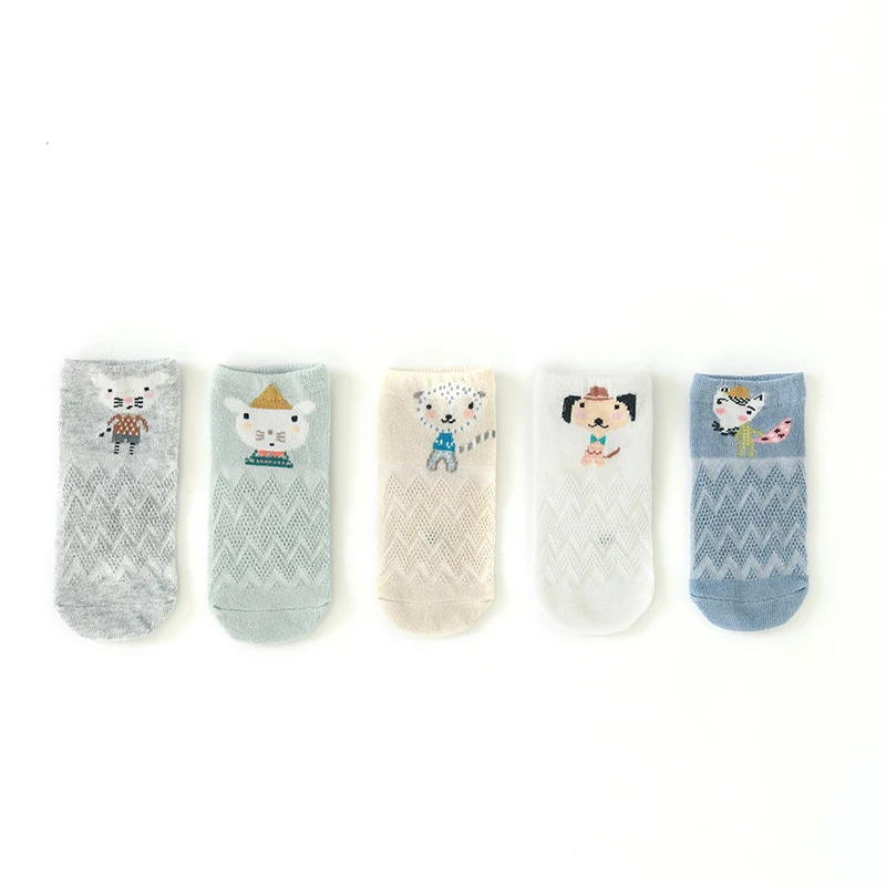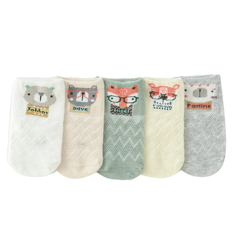 Тонкие милые дышащие сетчатые чулки для новорожденных с мультяшным рисунком, без косточек, 5 пар/лот