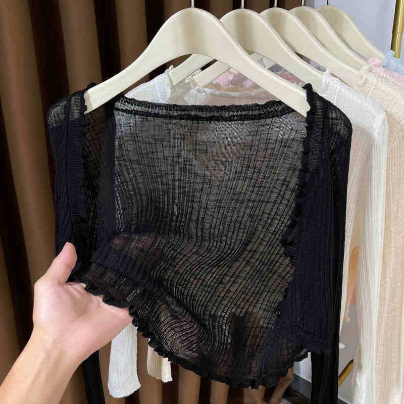Тонкий вязаный кардиган женский новая модель с платьем на бретелях, шаль, маленькое пальто, блузка из ледяного шелка для защиты от солнца one size fits all чёрный