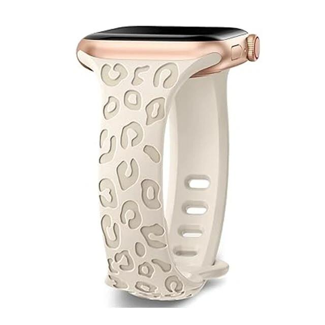 Тонкий силиконовый ремешок с леопардовым принтом для Apple Watch Ultra 2/Ultra 49 мм 45 мм 41 мм 42 мм 46 мм 40 мм женский сменный ремешок для iWatch Series 10 9 8 7 6 5 4 3 SE 42-44-45-49mm S10-46mm игристого белого