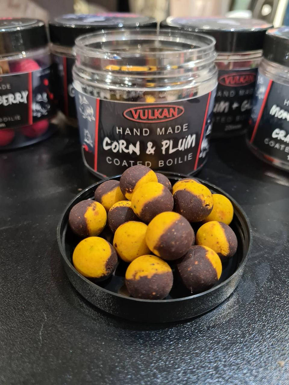 Теперь мы представляем вам растворимые (пылящие) бойлы Vulkan Corn and Plum coated boilies, которые помогут вам ловить рыбу всегда и везде, ощущая при этом кисло-сладкий аромат сливы.
