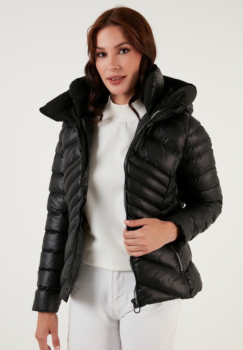 Women's Diving Suit Fabric Effect Long Sve Jaet New Autumn Winter Street Sle ort Outerwear Collar Button Closure