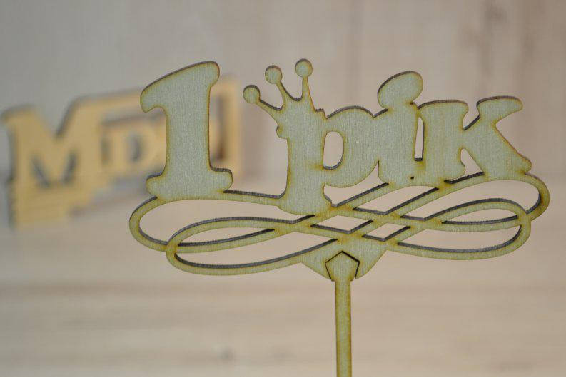 Деревянный топпер для торта. Топпер на цельной ножке упакован в пакет с еврослотом, что позволяет красиво его представить на витрине Вашего магазина.