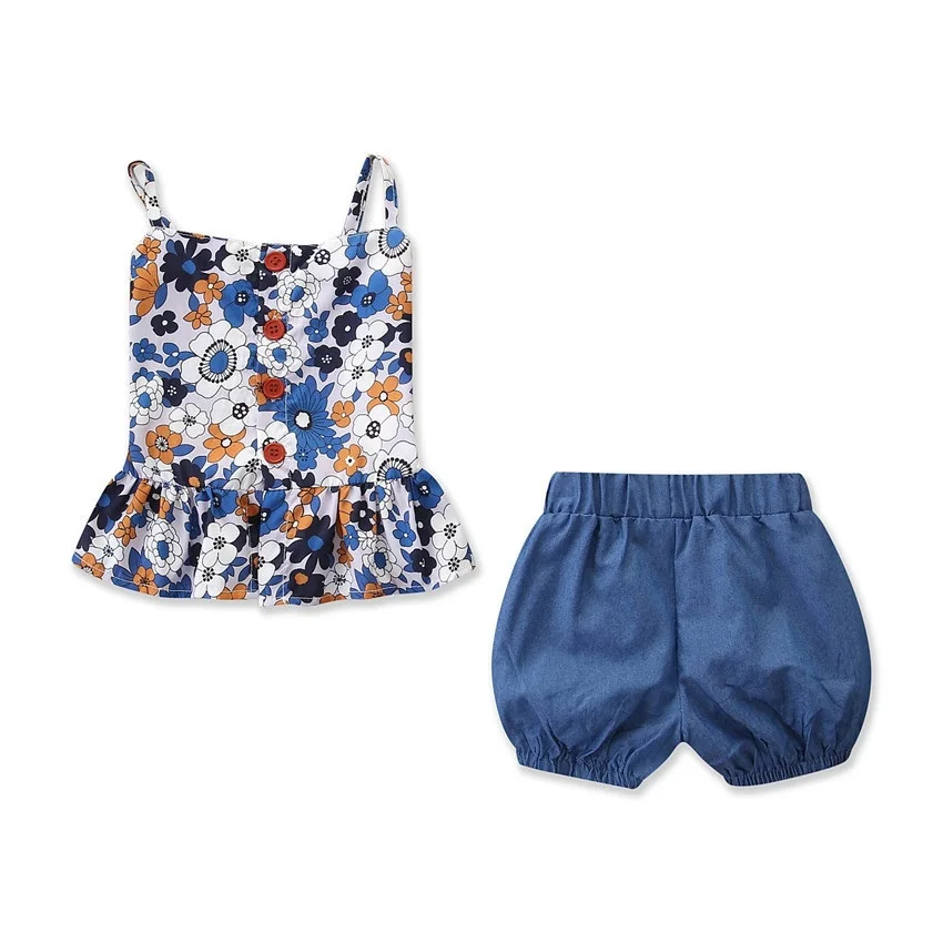 Топы без бретелек для девочек + эластичные шорты комплекты одежды из 2 предметов модные желтые летние комплекты с цветочным принтом для мале...