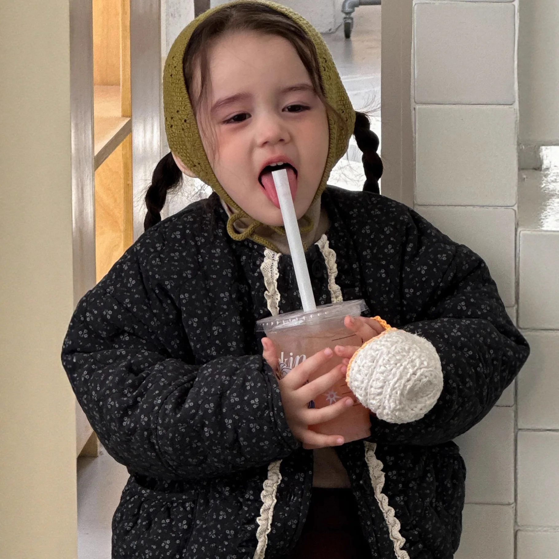 Топы, пальто с длинными рукавами, хлопковое пальто с цветочным принтом для девочек в лесном стиле, осень-зима, детское теплое зимнее милое, простое, повседневное