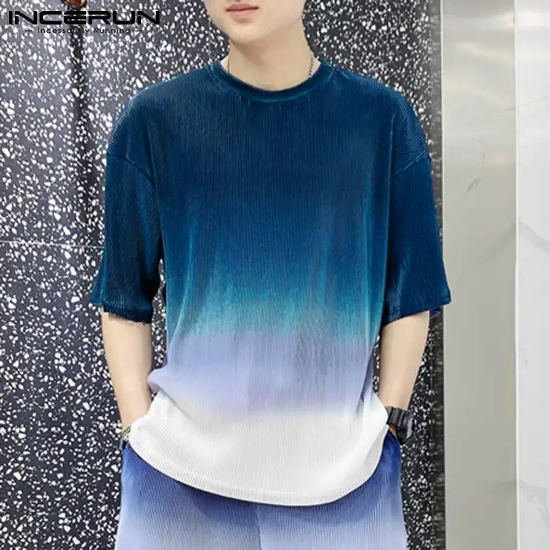 Топы INCERUN, новинка 2022, мужская рубашка в Корейском стиле, Повседневная Уличная одежда, Стильная мужская Свободная футболка с переходом цвета...