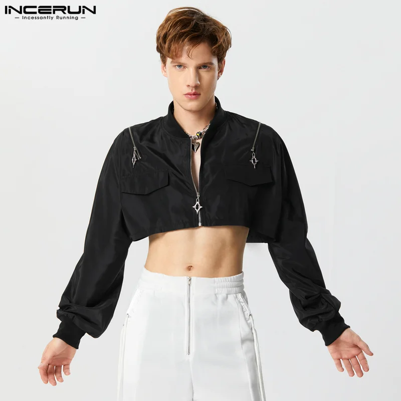 Топы INCERUN 2023, мужские укороченные куртки в американском стиле на молнии, пикантные повседневные женские тонкие куртки с длинным рукавом, пальто