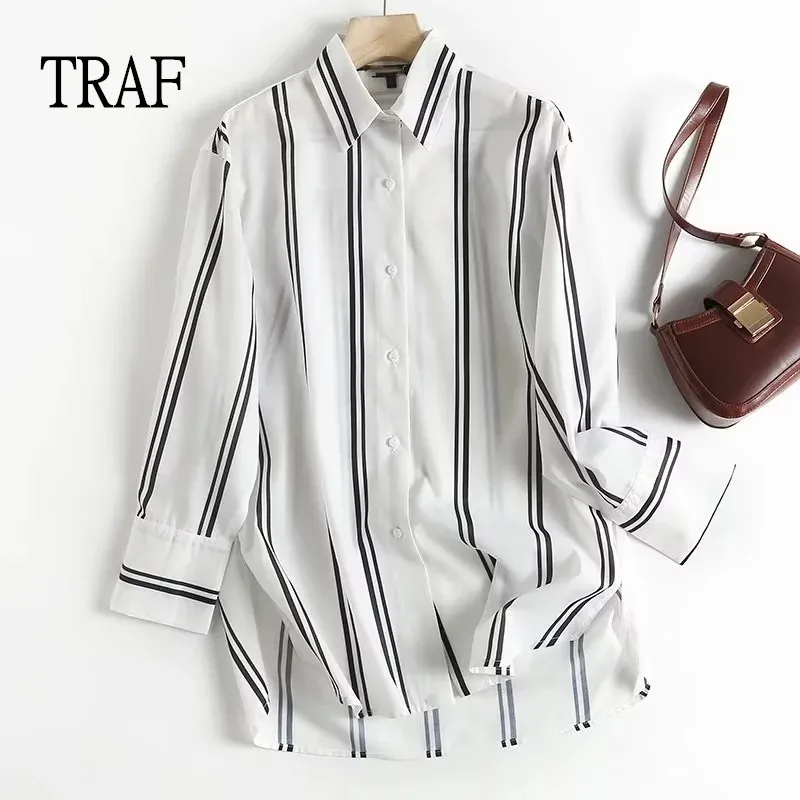 Топ женский в полоску, с длинным рукавом, свободного покроя