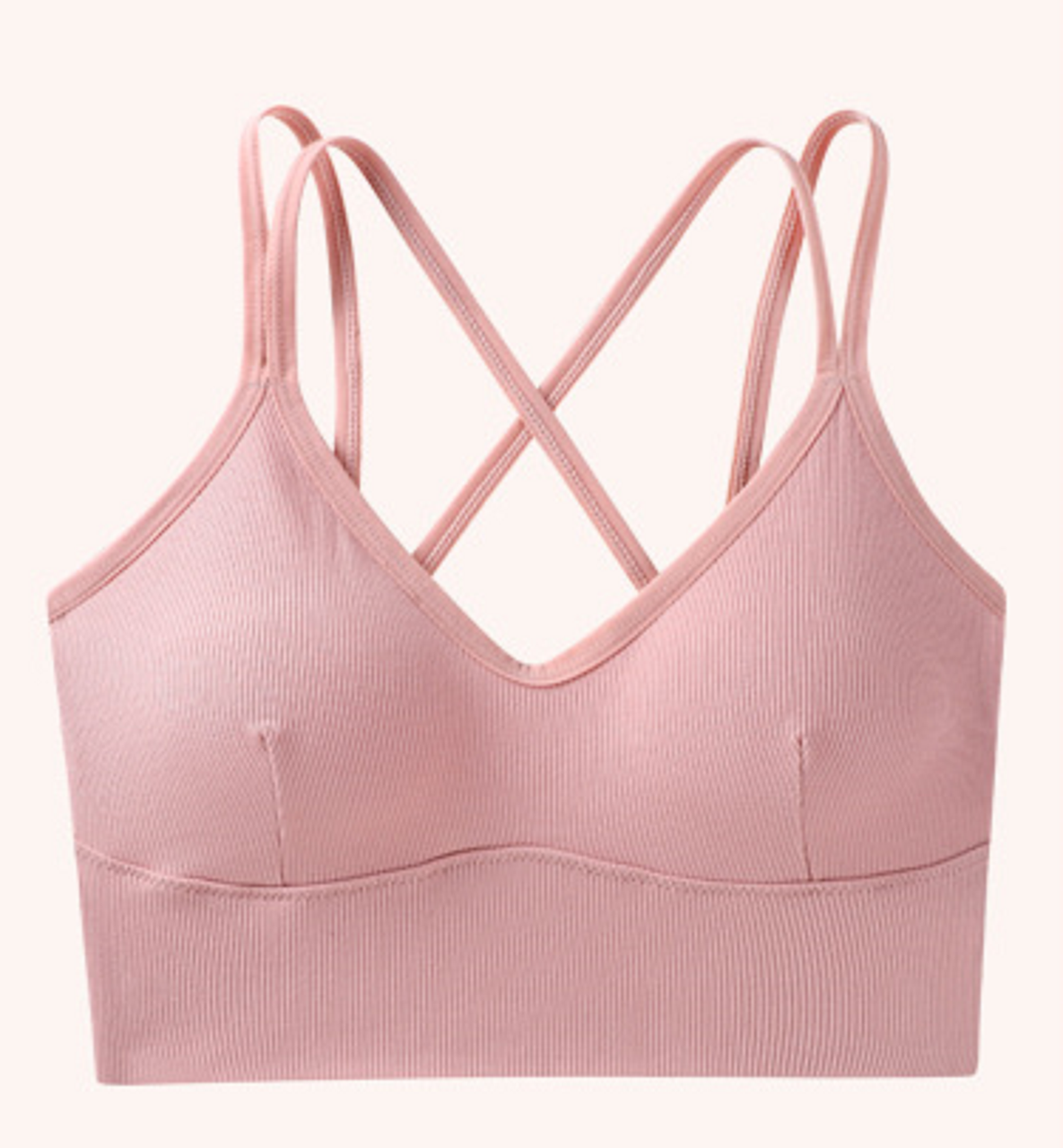 Топ женский рубчик на тонких бретелях накрест, Розовый