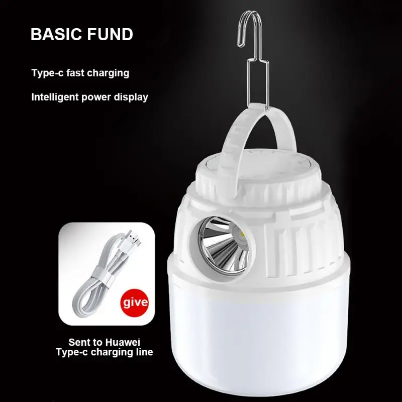 Solar Charging Type-c Rechargeable Bulb 100w Portable Night Market Night Lamp Fast Charging Waterproof Solar Led Camping Light