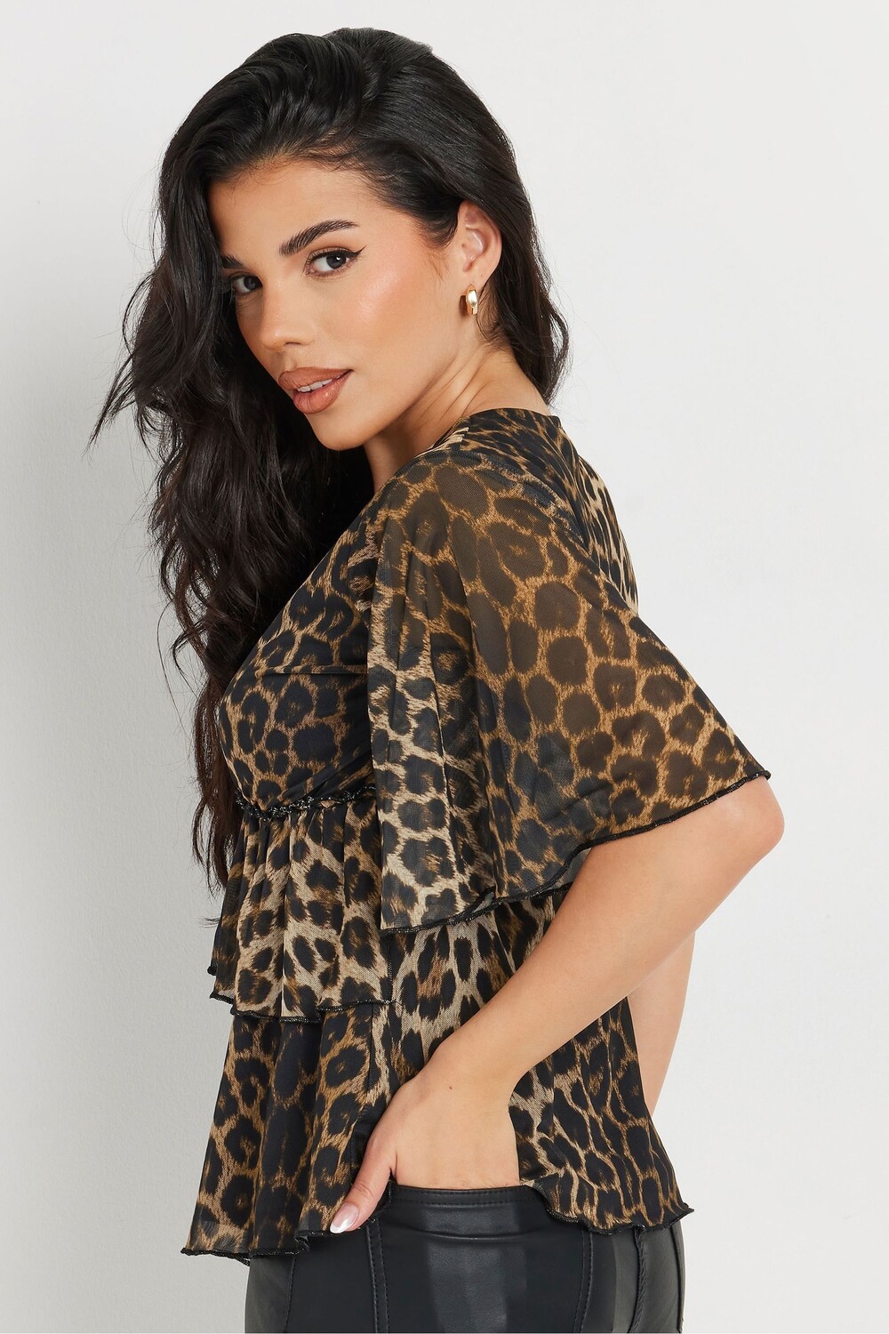 Топ из сетки с анималистичным принтом и оборками Pixiegirl Petite, коричневый