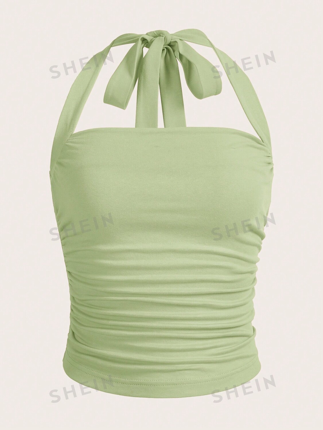 Топ плиссированный Shein Ezwear с лямкой на шее, мятно-зеленый