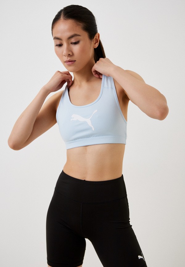 Топ спортивный PUMA, Голубой, Mid Impact 4Keeps Bra Icy Blue-white BIG