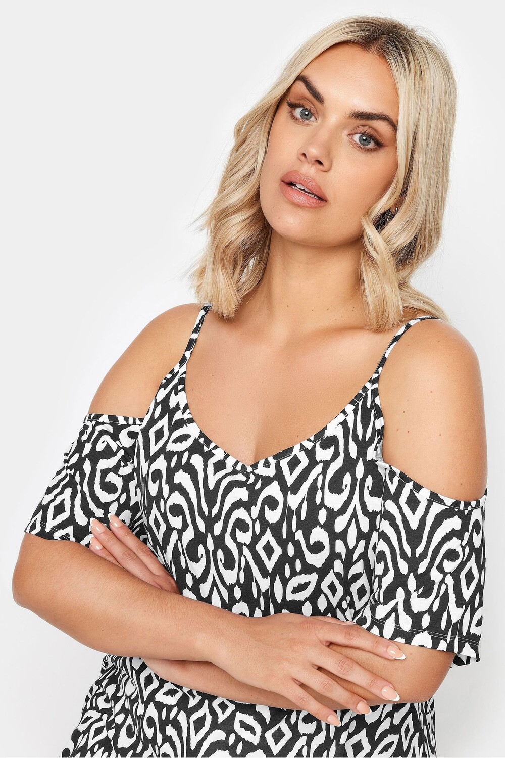 Топ с открытыми плечами и радужным зебровым принтом Yours, черный
