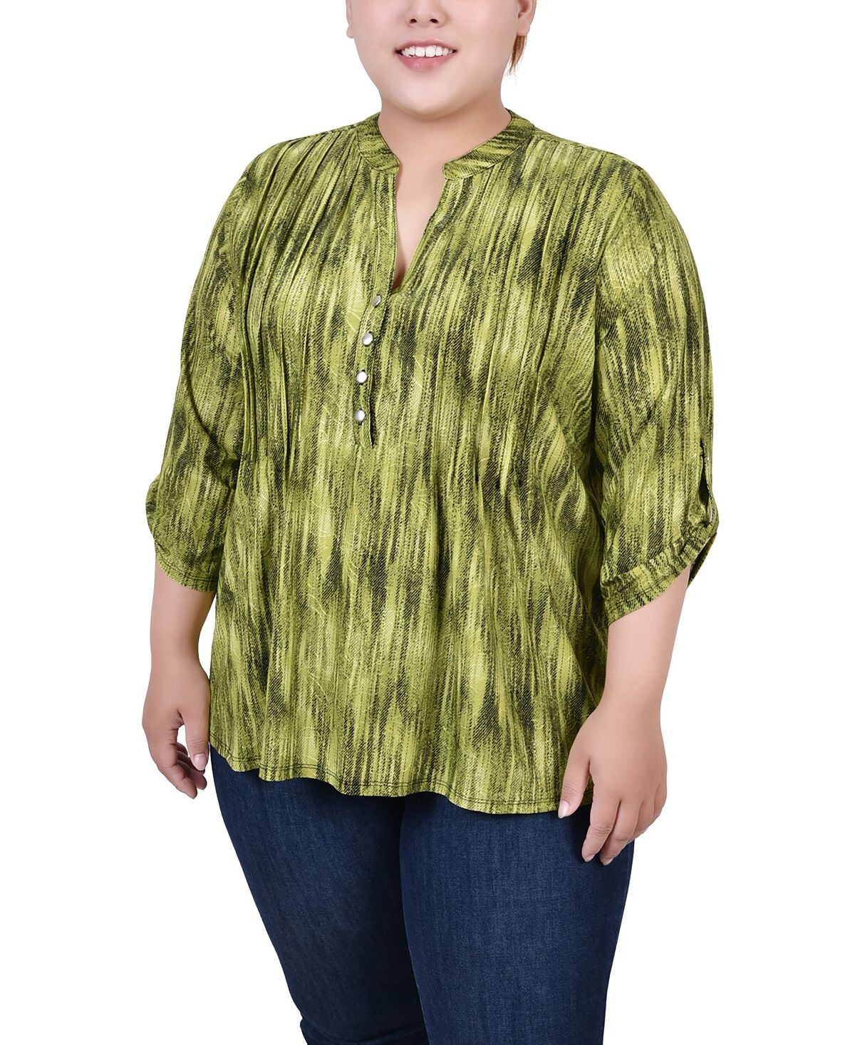 Топ с y-образным вырезом и длинными рукавами 3/4 большого размера NY Collection