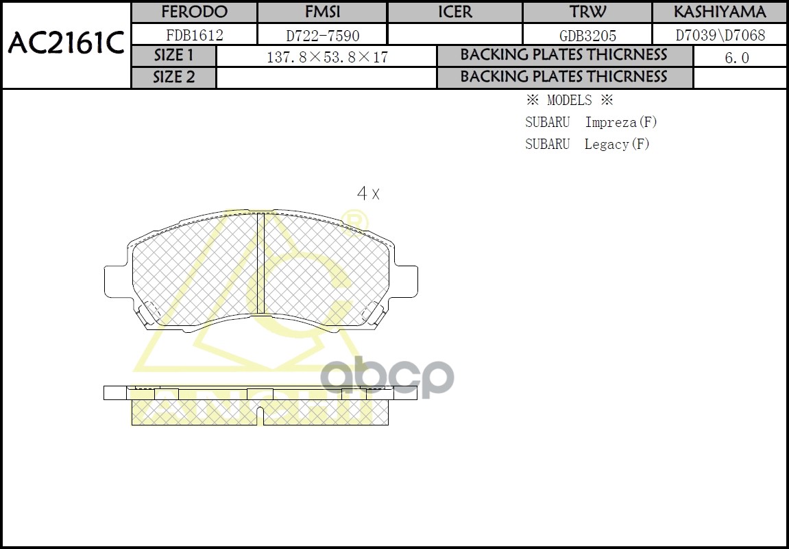 Тормозные Колодки Anchi Ac2161c Subaru Impreza 96- , Legacy 96- Front ANCHI арт. AC2161C