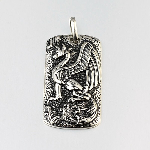 PandaHall Rectangle with Dragon 304 Stainless Steel Pendants, Antique Silver, 48x26x6mm, Hole: 10x3.5mm 304 Stainless Steel Rectangle