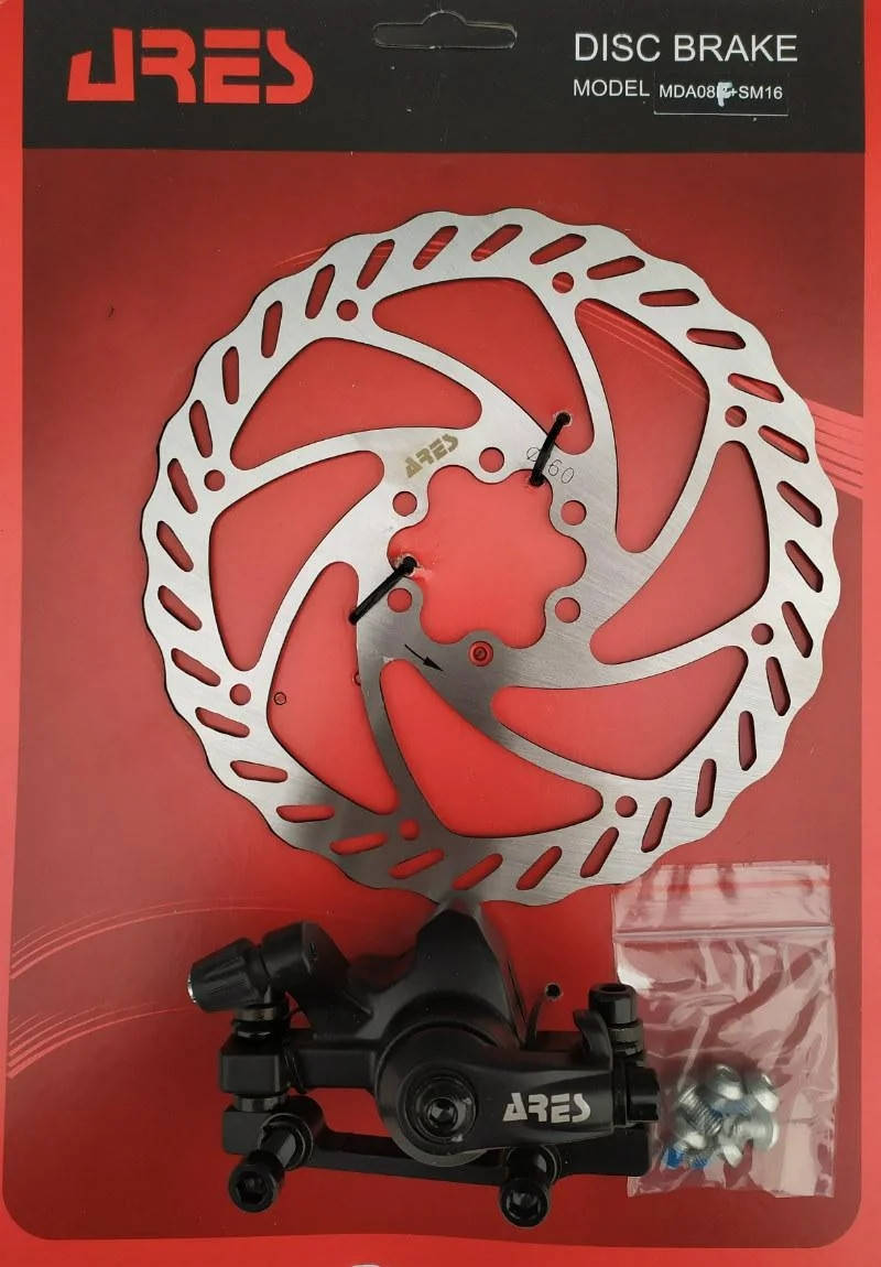 Механические дисковые тормоза фирмы Ares MDA08F+SM16, является альтернативой многим дисковым тормозам начального уровня. Данная модель предусматривает установку на переднее колесо, с диаметром тормозного ротора 160 мм., или на заднее колесо, с диаметром тормозного ротора 140 мм. Тормоза легко устанавливаются на велосипед и просты в настройке. Суппорт изготовлен из алюминиевого сплава, а тормозной ротор из высококачественной стали. Вес суппорта без ротора, переходника и болтов: 190 грамм. Комплект: тормозной суппорт ( тормозная машинка), тормозной ротор 160 мм. под 6 винтов. Адаптер: 160F\140R